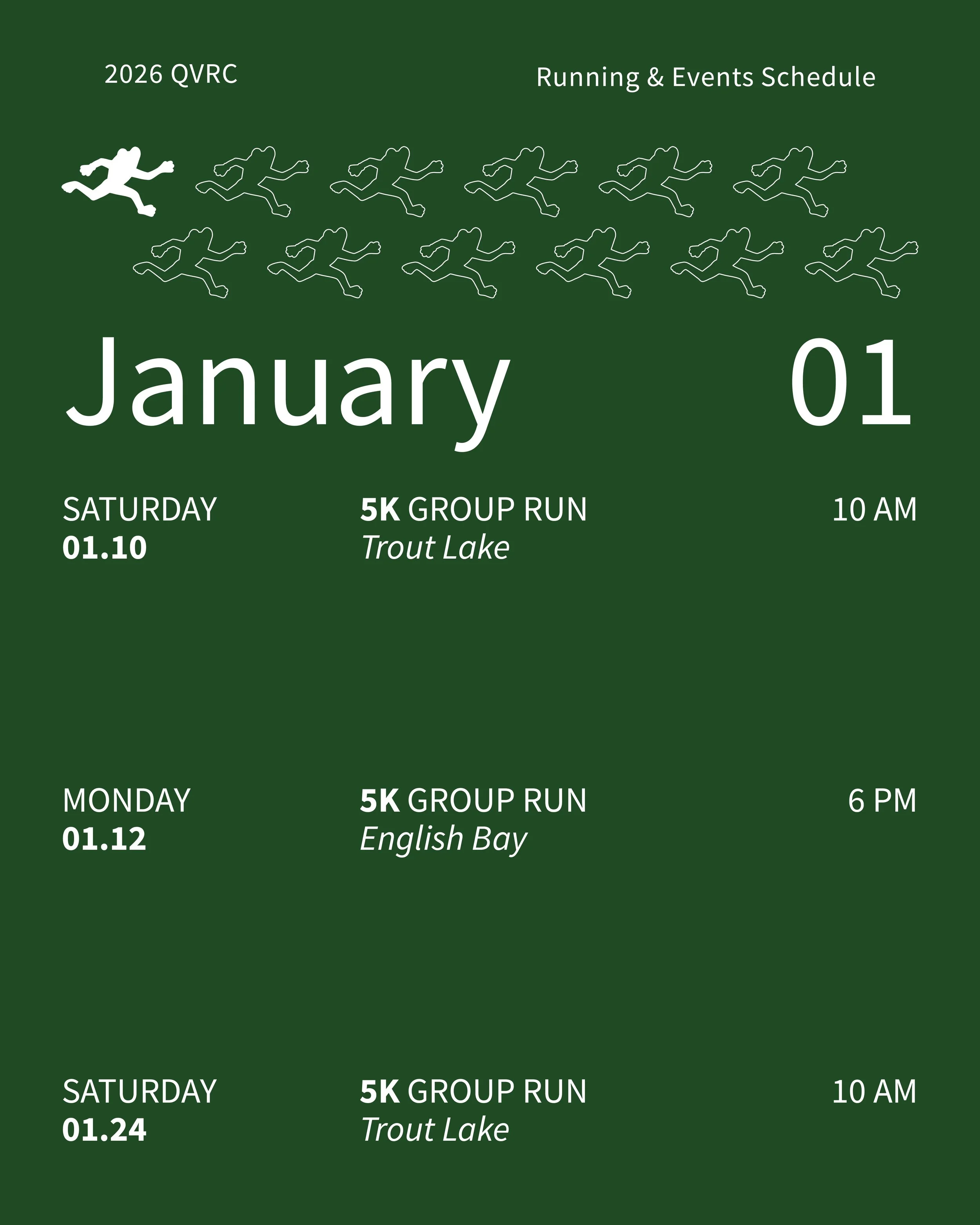 For the QVRC Winter Social, I designed the event poster and created a printed reflection sheet where members could write down their proudest moments of the season. The intention was to create space for celebration, recognition, and community connection beyond the run itself.